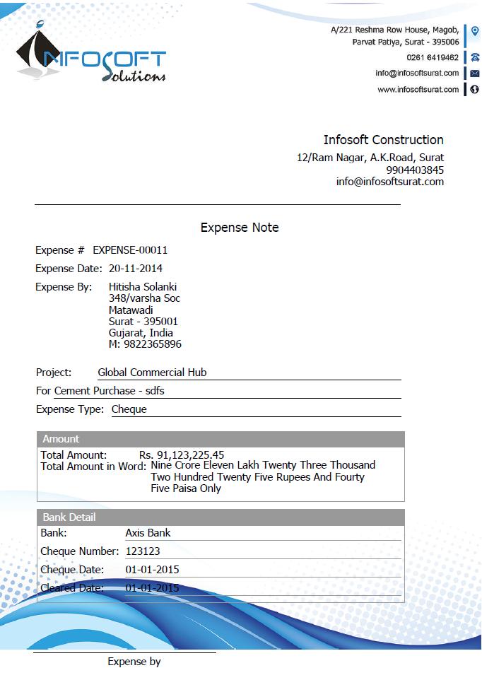 Cleared Date: Cheque clear date, till we don’t fill this information Expense will be not registered in our system and you can see all this type of pending cheque in “Reports=> Payments Not Clear”